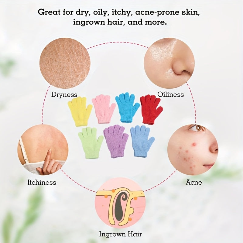 10pcs Bohemian Style Exfoliating Bath Gloves, Polyester Blend, Fade Resistant, Coastal Theme, Knit Fabric Weaving, 486gsm, for Shower, Spa, Massage, Body Scrub, Dead Skin Removal, Random Color Selectio